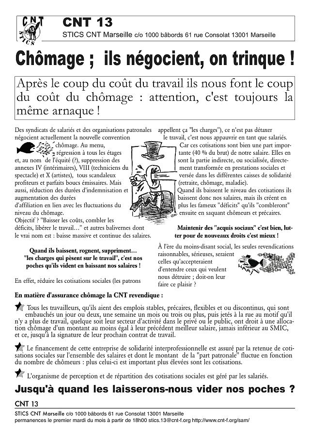 spectacle en lutte, SUD culture, CNT, ont décidé de rester mobiliser contre la casse des droits sociaux entreprise par le MEDEF à l’occasion de la négociation de la nouvelle convention UNEDIC.