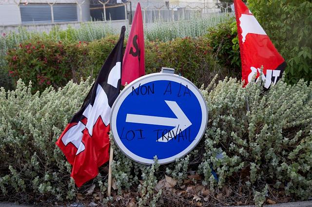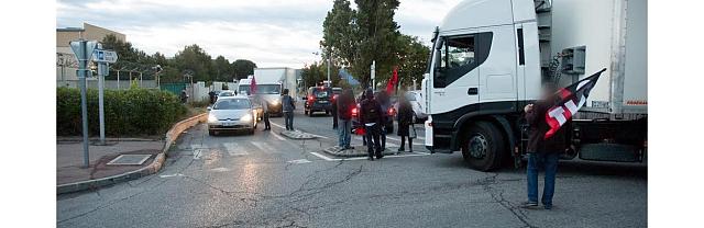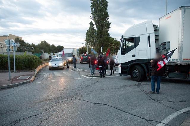 Réveil matinal ! Des syndicalistes de la CGT, de la CNT 13, de la CNT-SO et de l’Union Solidaires 13 rejoint par des militant.e.s de l’Assemblée 13 en Lutte, Nuit Debout, chômeurs, précaires, représentant une cinquantaine de personnes se sont dirigées vers la Zone Industrielle des Estroublans de Vitrolles et ont réalisé une action de blocage pendant plus de 2 heures !