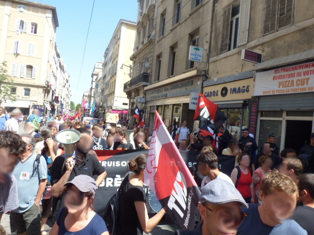 Un rassemblement devant le TGI aura lieu une nouvelle fois le 31 août 2016 à Marseille, soyons solidaires et présent.e.s face à la répression. Nous, la CNT 13 condamnons la mise en GAV de notre camarade de lutte et exigeons l’abandon de toute poursuite.