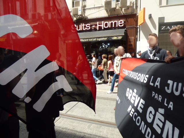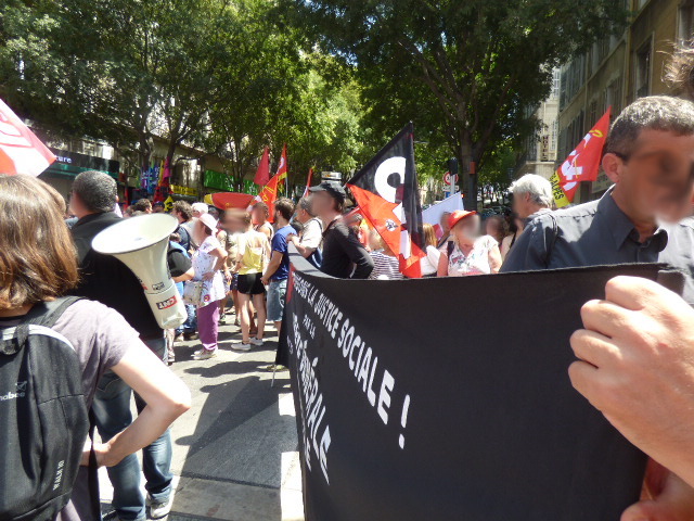 Nous nous questionnons désormais sur la solidarité au sein du mouvement social : le fait que tout un cortège syndical passe et ne s’arrête même pas pour aider des camarades empêchés de rejoindre la manifestation par un cordon de police, pas même un slogan en solidarité ( à l’exception d’une trentaine de personnes qui nous soutenaient cependant).