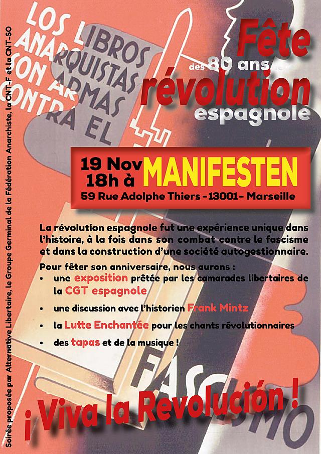 Nous vous donnons rendez-vous samedi 19 novembre 2016 à partir de 18H à Manifesten, 59 rue Adolphe Thiers, 13001