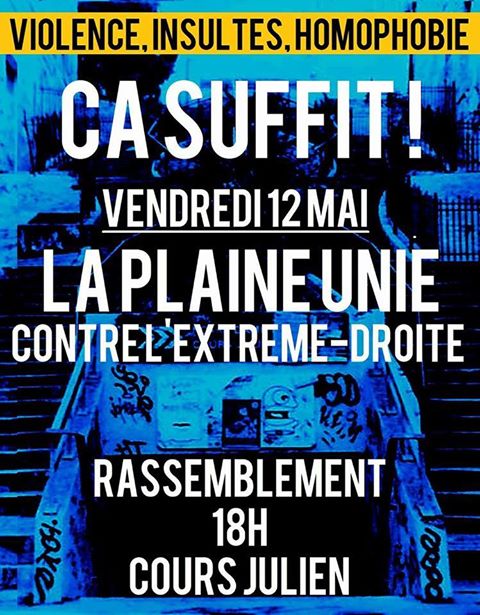 Les idées des groupes d’extrêmes droites ne sont pas que des provocations sur papier, ce sont aussi des passages à l’acte et Marseille en a été témoin très récemment. Dans un pays où un parti ouvertement xénophobe est autorisé, même subventionné, par l’État à se présenter aux élections présidentielles, dans ce pays où les lois anti-racistes ne sont pas respectées quand il s’agit du même parti, dans ce pays où pour des raisons de jeux électoral ce même parti n’est pas interdit depuis belle lurette, comment s’étonner que de telles actions aient lieu.