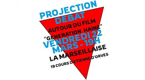 Le collectif unitaire antifasciste de Marseille organise une projection suivie d’un débat autour du film "Génération Haine", qui relate l’enquête d’un journaliste qui a infiltré un réseau fasciste à Lille, autour du bar/local appelé "La Citadelle".