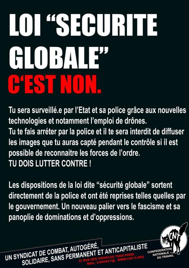 Alors que les sénateurs devront prochainement se prononcer sur le projet de loi « sécurité globale », partout en France de nouvelles manifestations seront organisées pour faire entendre notre désapprobation face à cette frénésie sécuritaire.