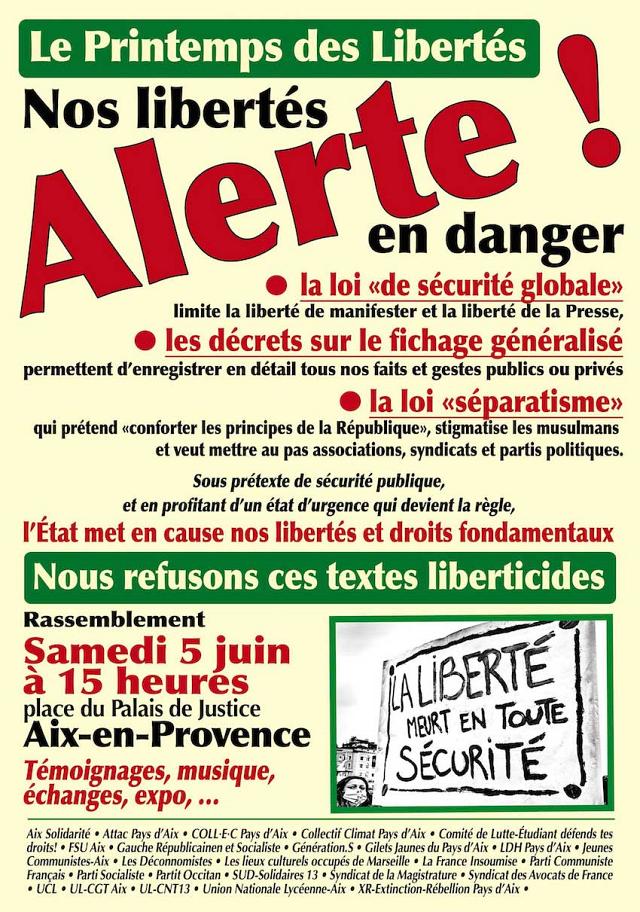 RASSEMBLEMENT SAMEDI 5 JUIN à 15 heures place du Palais de Justice Aix-en-Provence