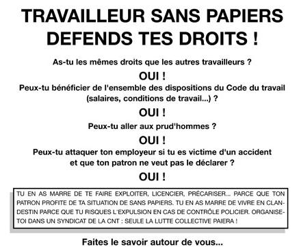 – Le dernier communiqué confédéral de la CNT sur la lutte des travailleurs sans-papiers : cliquez ici
